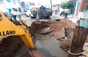 SAPAS trabaja en reparación de socavón en calle Jesús Carranza
