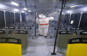 Sanitizan y fomentan uso de cubrebocas en el transporte público
