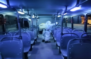 Desinfectan camiones Urbanos y Sub urbanos de la “Centralita”