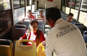 Entregan gel desinfectante en transporte público para contener al coronavirus