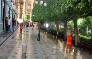 Inicia Navarro el Cervantino lavando las calles de Guanajuato