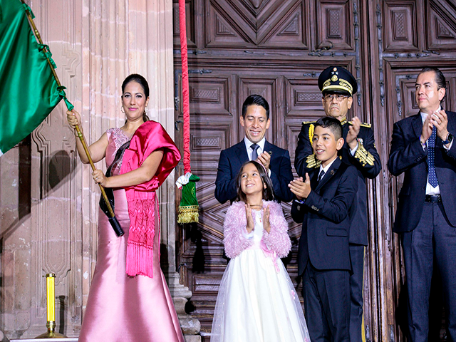 Luego del Grito, la Mandataria Estatal ondeó la Bandera y repicó la campana. Acto seguido se entonó el Himno Nacional; y la Gobernadora entregó la Bandera a la Escolta Militar para su resguardo.
