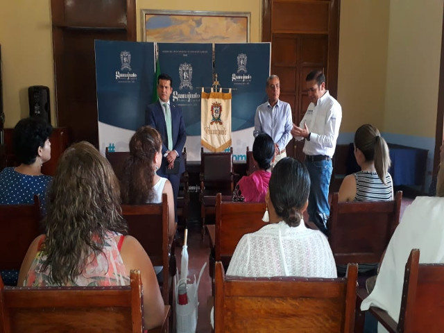 Guanajuato, Gto.; 22 de mayo de 2019.– Consciente de la problemática, el alcalde capitalino, Alejandro Navarro Saldaña, atendió a las representantes de las 18 estancias infantiles del municipio que enfrentan complicaciones por el recorte a las partidas federales que fortalecían su funcionamiento.